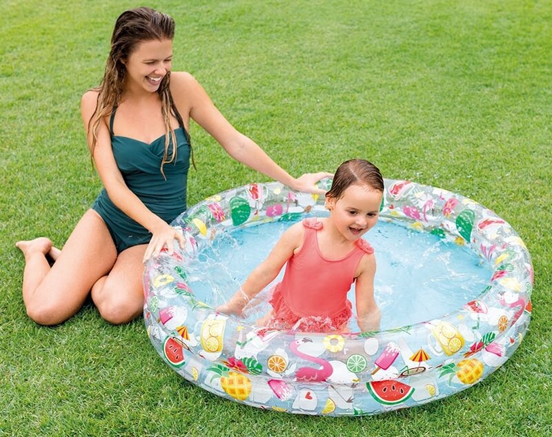 Надувной детский бассейн. Бассейн состоит из двух ярких кругов, изготовлен из винила. Насос в комплект не входит. Для детей от 3-х лет.
